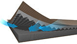 エアスルー構造 少し柔らかめと硬めの2層構造。マットの中心部分にプロファイル加工の凹凸があり、凹部分は空気や熱が通りやすく、爽快で心地よい眠りを実現します。 ![]() |