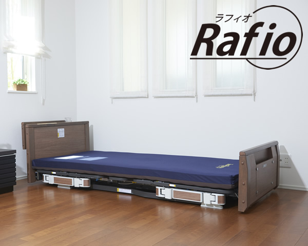 - ラフィオ(rafio)3モーター ポジショニングベッド 木製宮付き(棚付き)ボード マットレス付き サイドレール付き