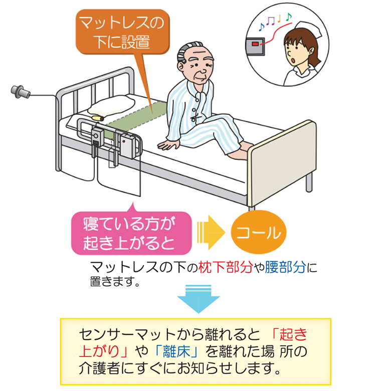 置くだけで簡単にセット ベッドの上で起き上がりを知らせます