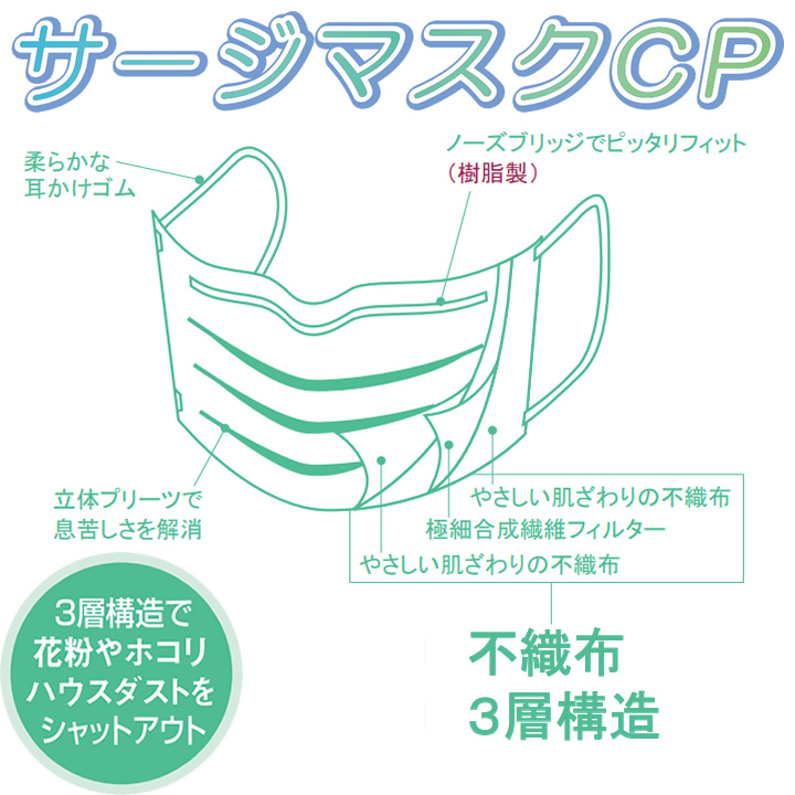 マスク サージマスクCP 樹脂製ノースブリッジ 50枚 076161 076162 076165 仕様表