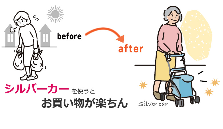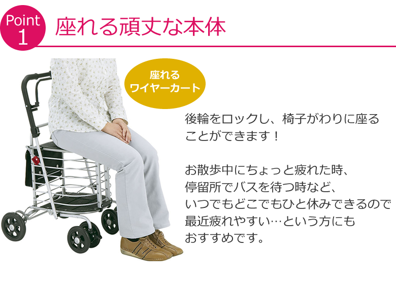 - お散歩中に疲れたときに座れる歩行補助車です。