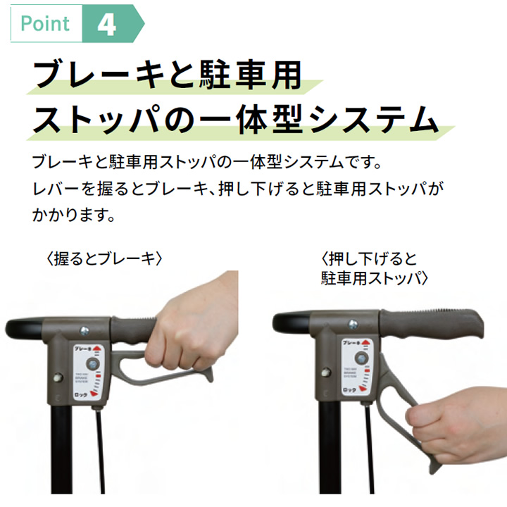 1.高めのハンドルと左右どちらでも両輪ブレーキ