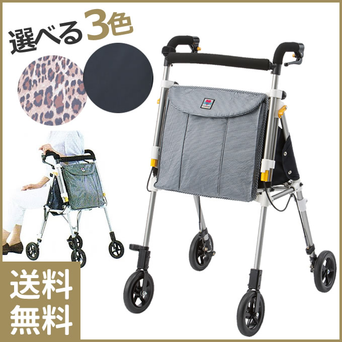 軽量で折りたたみも簡単なので、電車移動や旅行にも最適。ひと休みできるイスと、体を支えるガード付きで歩行をしっかりサポート。