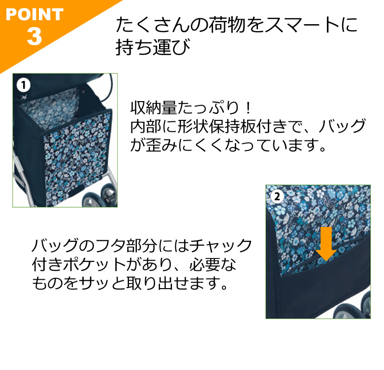 狭い場所でも小回りがきき、操作しやすいシルバーカーです。