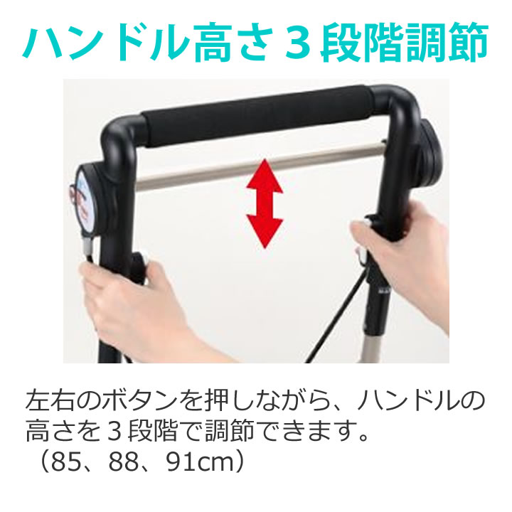 ハンドル高は、左右のボタンを押しながら、85・88・91cmの3段階から選べます。