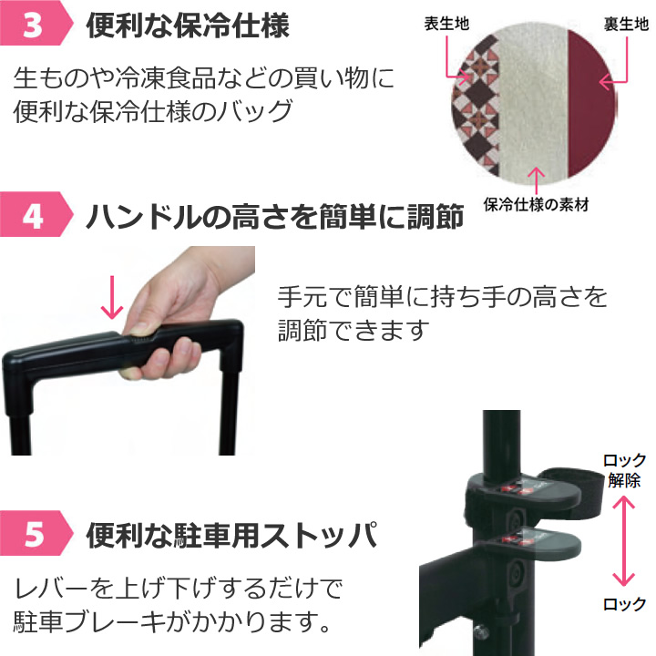 生ものや冷凍食品などの買い物に便利な保冷仕様のバッグです。