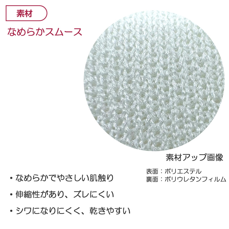 ○伸縮性があり、ズレにくい、シワになりにくく、乾きやすい素材。