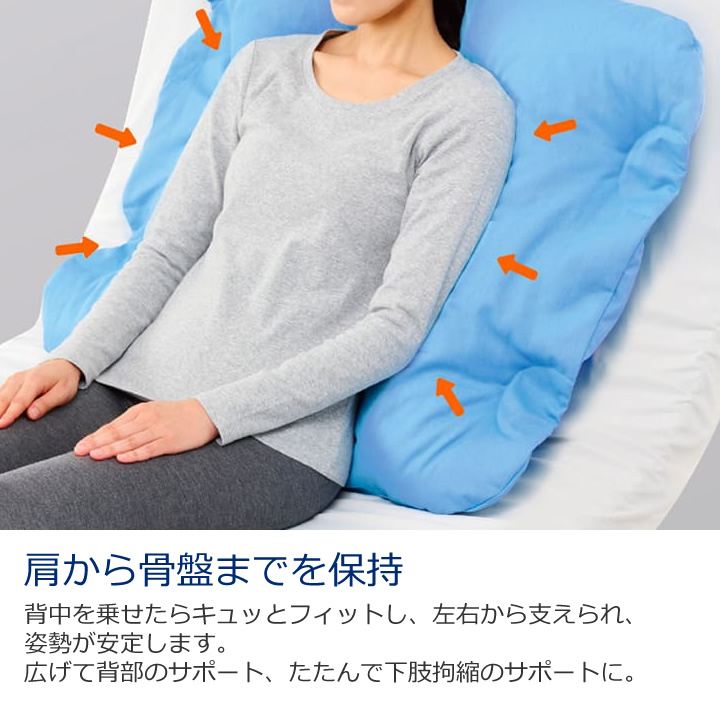 ○広げて背部のサポート、たたんで下肢拘縮のサポートに。
