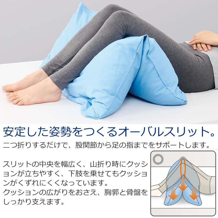 二つ折りするだけで、股関節から足の指までをサポートします。