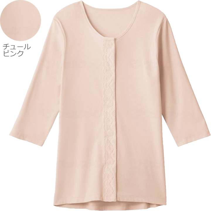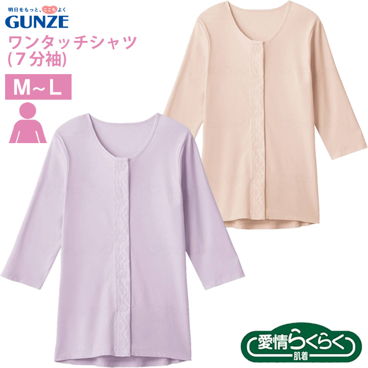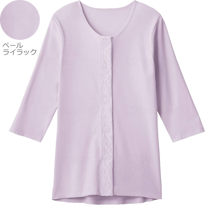 - 婦人 7分袖 ワンタッチシャツ 前あき 制菌・抗菌加工 愛情らくらく