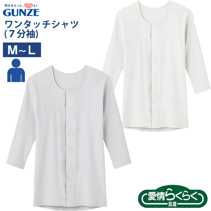 紳士 7分袖 ワンタッチシャツ 前あき 綿混 愛情らくらく