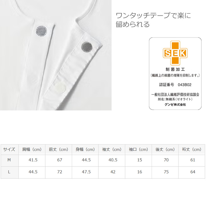 紳士 7分袖 ワンタッチシャツ 前あき 綿混 愛情らくらく HWA119 仕様表