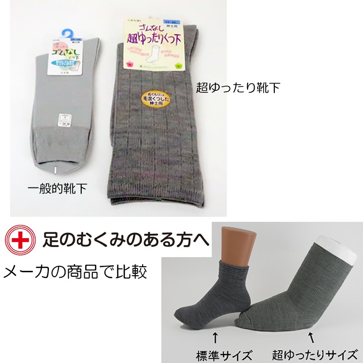 - ゴム無し 超ゆったりくつ下 (毛混) 紳士用 秋冬用 日本製 男性向け