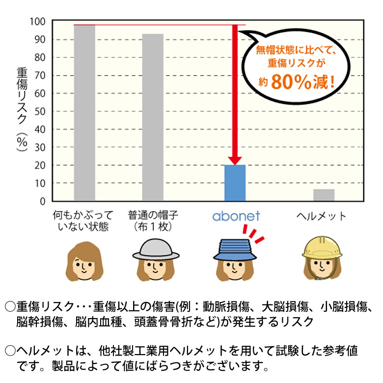 全体を保護する機能は重症リスク60%を軽減し、後ろに関しては80%の軽減率。