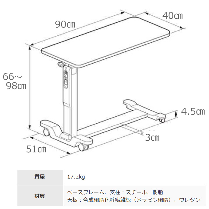 PT04-900MB PT04-900LB PT04-900WH 昇降式ベッドサイドテーブル 手元ロック仕様 商品詳細 介護ベッドのカスタマーネット