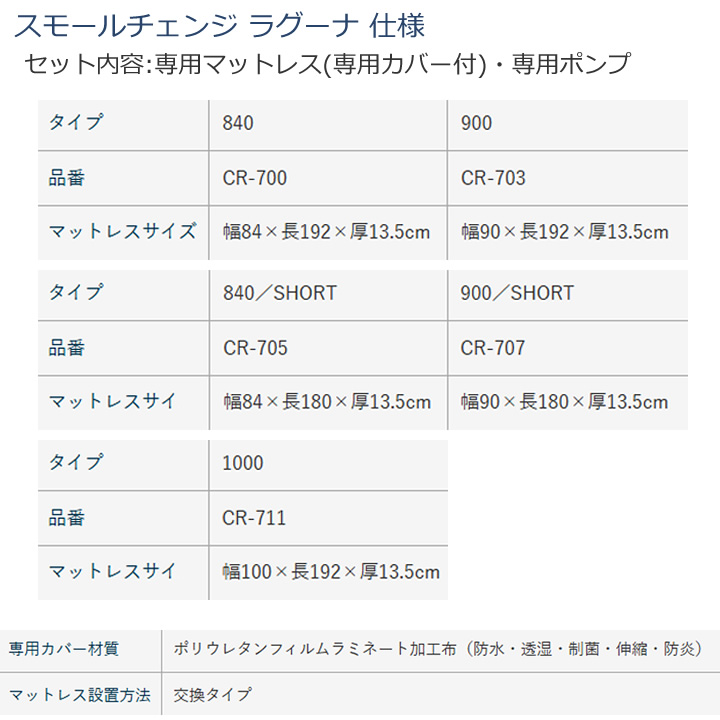 CR-703 CR-700 CR-707 CR-705 CR-711 スモールチェンジ ラグーナセット 仕様表