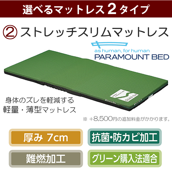■ 身体のずれを軽減する薄型・軽量 ストレッチスリムマットレス (通気タイプ) +8,500円の追加料金がかかります。 |