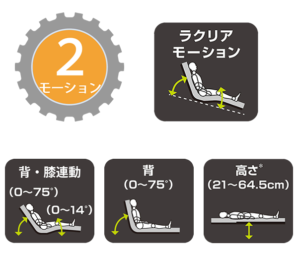 販売終了2モーターリクライニング背足連動リクライニング背のみ高さ調整ラクリアモーション
