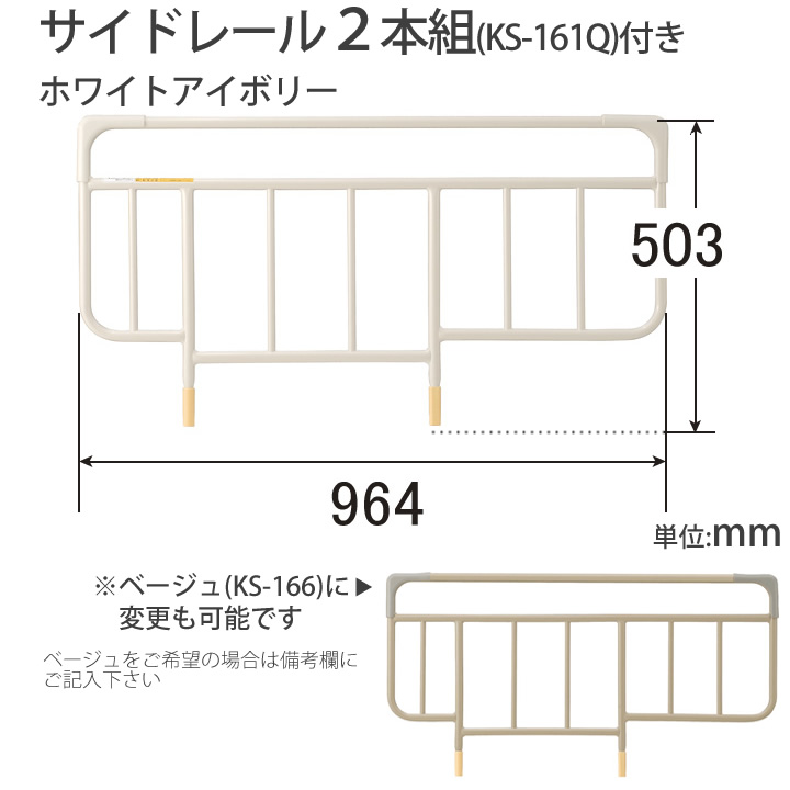 ※サイドレールは通常ホワイトアイボリー(KS-161Q)をお付けしておりますが、ベージュ(KS-166)に変更も可能ですので、ベージュをご希望の場合は備考欄にご記入下さい。