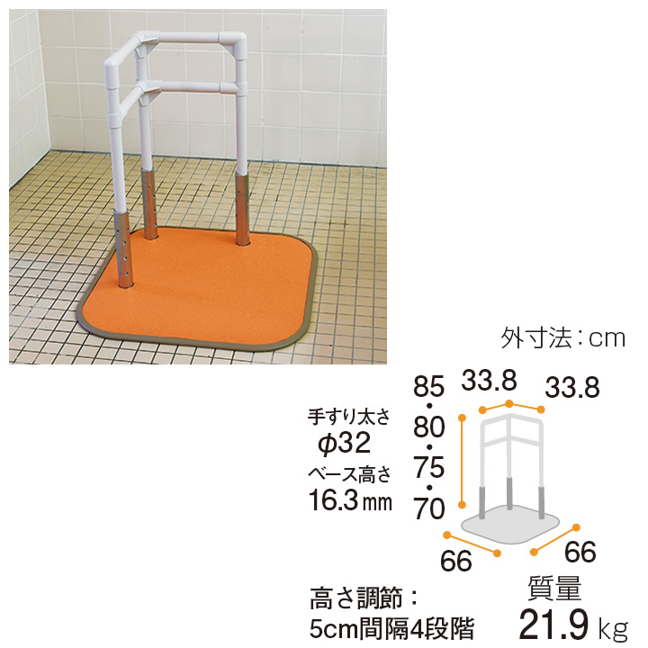 必要な場所に「おくだけ」ですぐに使用することができる工事不要の手すりです。