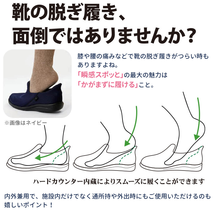 かかまずスポっと履ける 靴べらを使用した時のようにスムーズで履きやすい 瞬間スポット