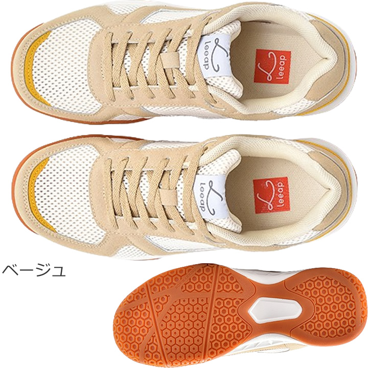 グリップ力に優れた飴色アウトソールは屋内での運動に最適です。
