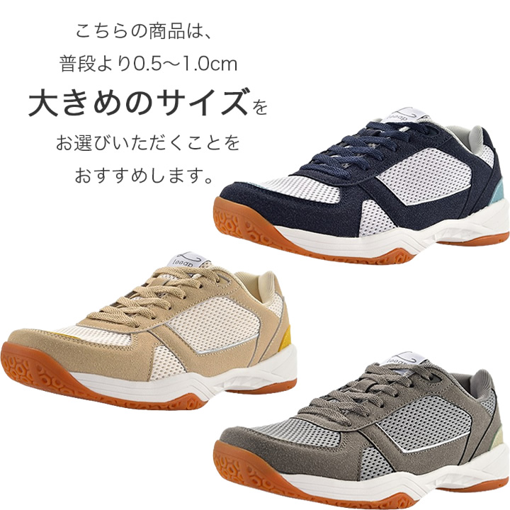 こちらの商品は普段より0.5~1.0cm大きめのサイズをお選びいただくことをおすすめします。