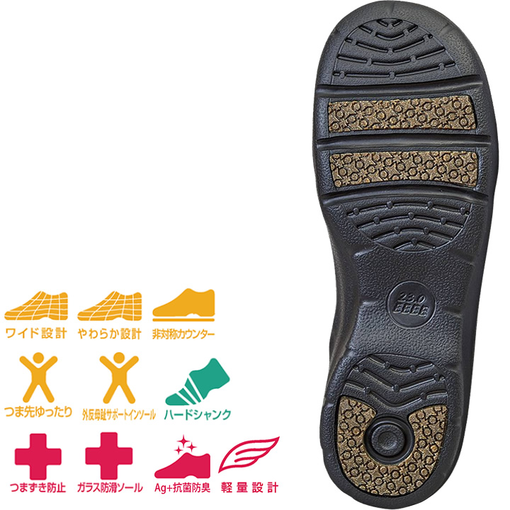 足囲4Eのワイド設計で、幅広の方にも対応した商品です。