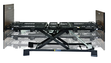 昇降の際にベッドがスイングせず垂直に昇降するので、設置面積が少なく済みます。 全長は業界トップクラスの省スペース設計となっています。 |