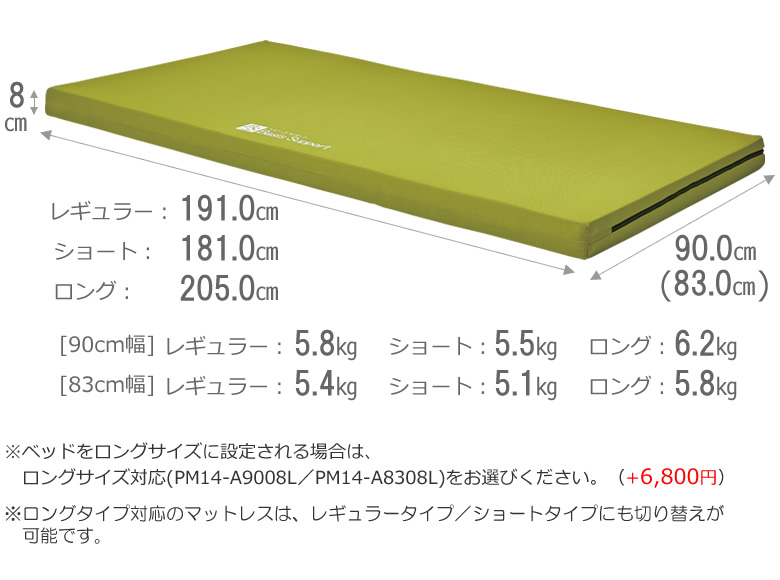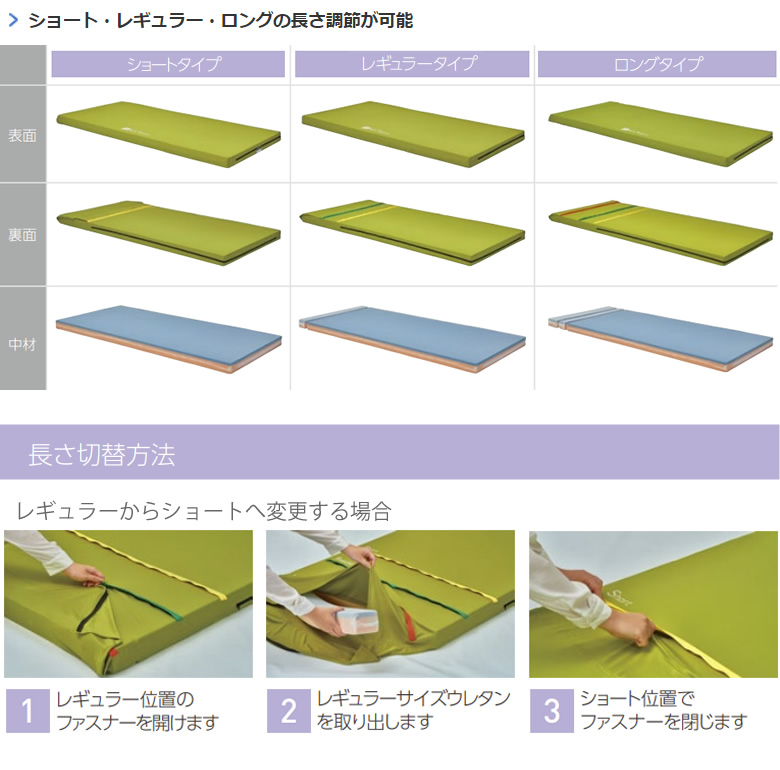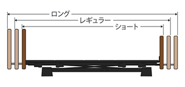 身長やお部屋のスペースに合わせてサイズをお選びいただけます。 ロング・レギュラー・ショートのパーツは共通のため、サイズ変更に別部品は必要ありません。 |