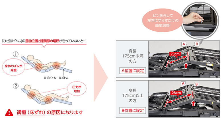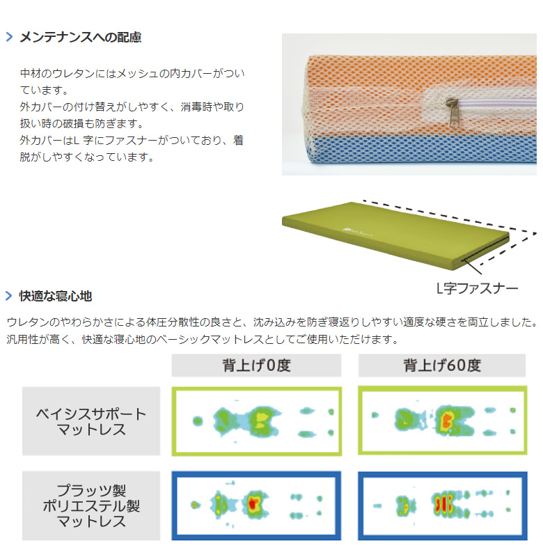新しい時代に対応するマルチなスタンダード介護用ベッド背上げ時のズレを抑えるフィッティング機能付。