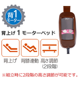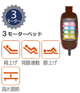 P113-21BB ミオレット3(MioLet3/MioletⅢ)2モーターベッド木製宮付き(棚付き)ボード3点セット サイドレール(手すり/柵)付き マットレス付き 商品説明