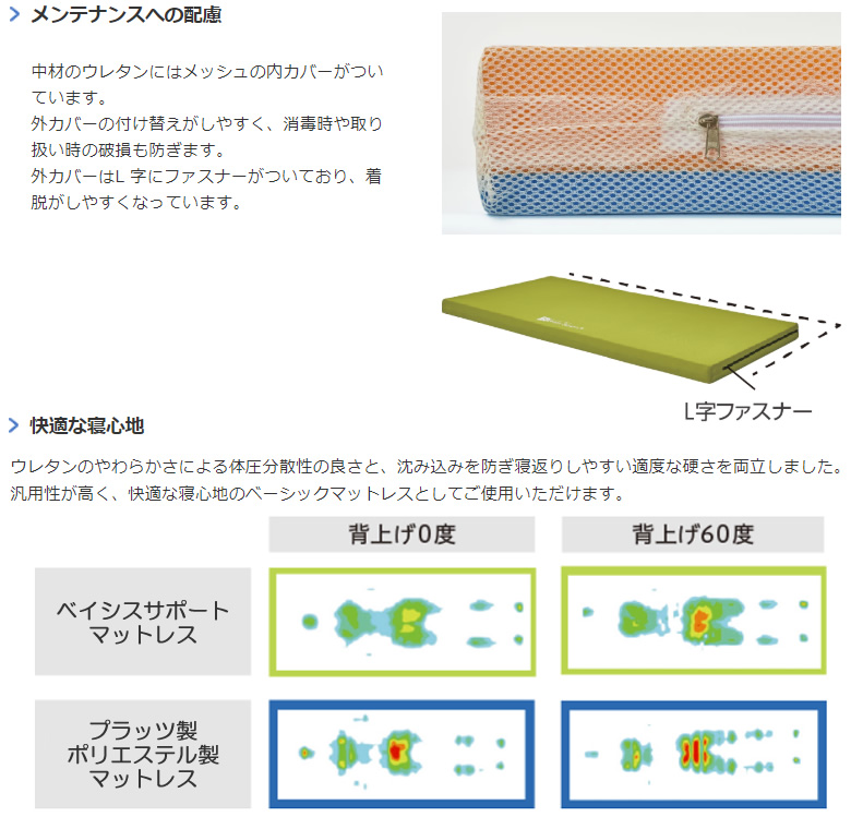 PM14-A9008L PM14-A8308L ベイシスサポートマットレス 通気タイプ ロングタイプ対応 (幅90cm/幅83cm) 商品説明