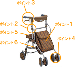 | ポイント4 2WAYキャスター搭載 | ポイント5 疲れたらすぐに座れます | |