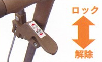 写真のように上にあげると後輪がロックされて下に下げるとロックが解除されます。手元で動かすことができますので誰でも簡単に操作ができます。