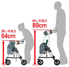 | 64cmから89cmまでの幅広い高さ調節が可能。様々な身長の方に対応できます。 らくらく自分サイズでできて、安全な運転ができます。 | |