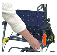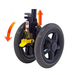 | 後輪の車輪と車輪の間が広くとってあるので足元が広々で、安全に走行できます。 | 折りたたみレバーを 上げるだけで簡単にたためるので、今まで折りたたみが苦手だった方にもお勧めです。 |