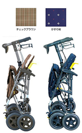 | 折りたたんだ状態でも自立します。 (開閉ロックレバー付) 自立するので収納してもすっきりしています。カラー:チェックブラウン・かすり紺 | |
