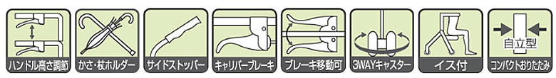 ![]() ◎ 特徴 ● 安心の4輪歩行車で、ショッピングや散歩にも使えるタイプです ● 3WAYキャスター 固定で直進・左右45度・360度回 転で、押し易さが選べる。3種切替キャスター。 ● おりたたみイス。 ● イスを利用する場合のサイドブレーキ付。 ● ハンドルがつながっていますので、もたれ掛かり押しができます。 ● ブレーキ位置が変えられます ● ハンドル高さ3段階調節。 ● 傘・杖留め機能。 | ||||||||||||||||||||||||||||
