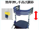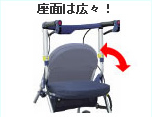 | ゆったり座れる広い座面。上げ下げワンタッチ。 |