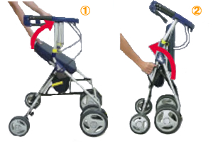 ◎ 折りたたみ方 1.座面を持ち上げ、確実に固定されているか確認して下さい。 2.折り畳みレバーを手前に引き上げて下さい。 |