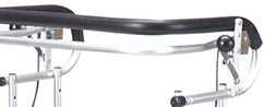 | この部分に肘を乗せて楽に歩行できます。サイドブレーキも手元にあって安全です。 | ||