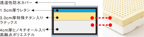 「寝心地」に優れたラテックス、さらに「透湿性」「防水性」を兼ね備えたカバーによって、ムレは逃し、水ははじく快適で使いやすいマットレスが誕生しました。