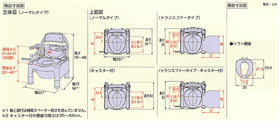 - ポータブルトイレ・FX-CPはねあげ<ソフト便座>・トランスファー付