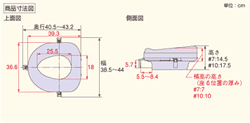 (#7)幅38.5×奥行40.5×高さ14.5cm 補高の高さ 7cm (#10)幅38.5×奥行40.5×高さ17.5cm 補高の高さ 10cm 便座内寸 18×25.5cm |