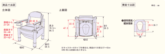 | サイズ: | 幅62×奥行59.5×高さ79.5~86.5cm (便座までの高さ:35~42cm |