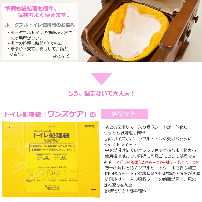 トイレ処理袋 ワンズケア ポータブルトイレ用 20枚入り YS-289 商品説明