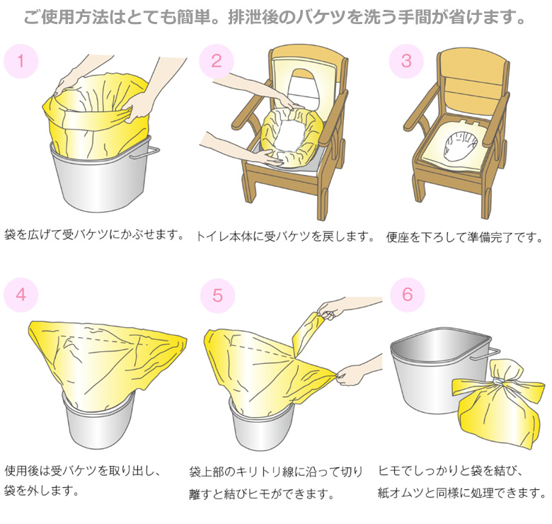 ○便や尿などの水分を凝固し、防臭・抗菌効果にすぐれ、焼却処理ができますので衛生的です。