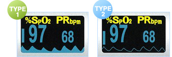 | オキシサンタで好評の脈波波形にさらにもう1種類の波形をプラスしました。 | ![]() |