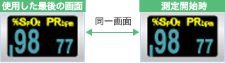 SpO2(動脈血酸素飽和度)、脈拍数、脈波波形 パルスバーグラフ、電池残量表示(電池消耗時に表示) |